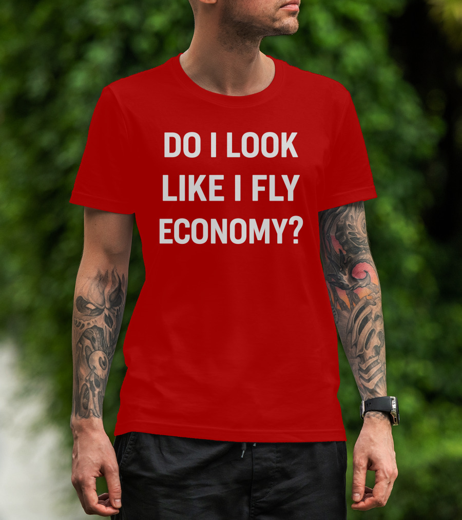 The Do I Look Like I Fly Economy Red T-shirt is designed for everyday wear and a consistent fit. Fabric is pre-shrunk ring-spun cotton with durable stitching. See the size chart below for exact measurements.