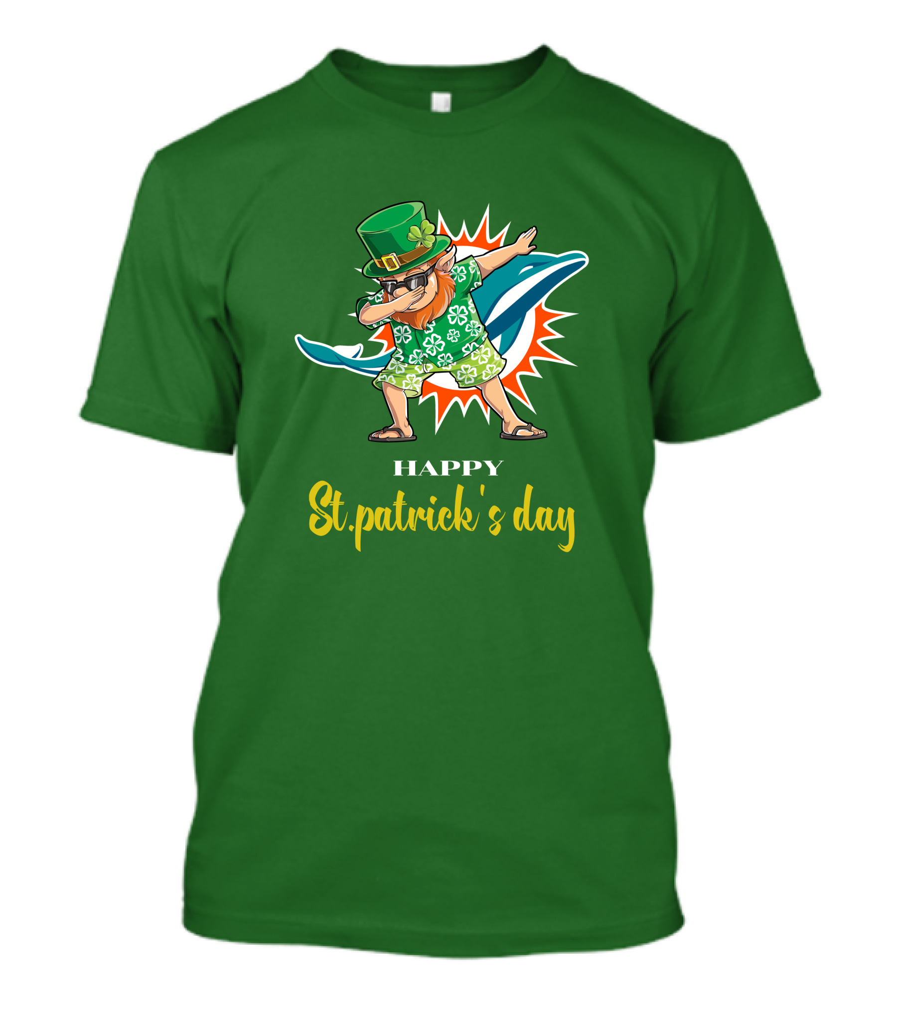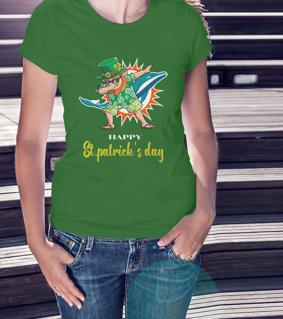 The Happy St. Patrick's Day Miami Dolphins Dabbing Leprechaun T-shirt is designed for everyday wear and a consistent fit. Fabric is pre-shrunk ring-spun cotton with durable stitching. See the size chart below for exact measurements.