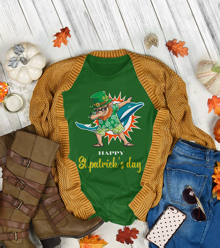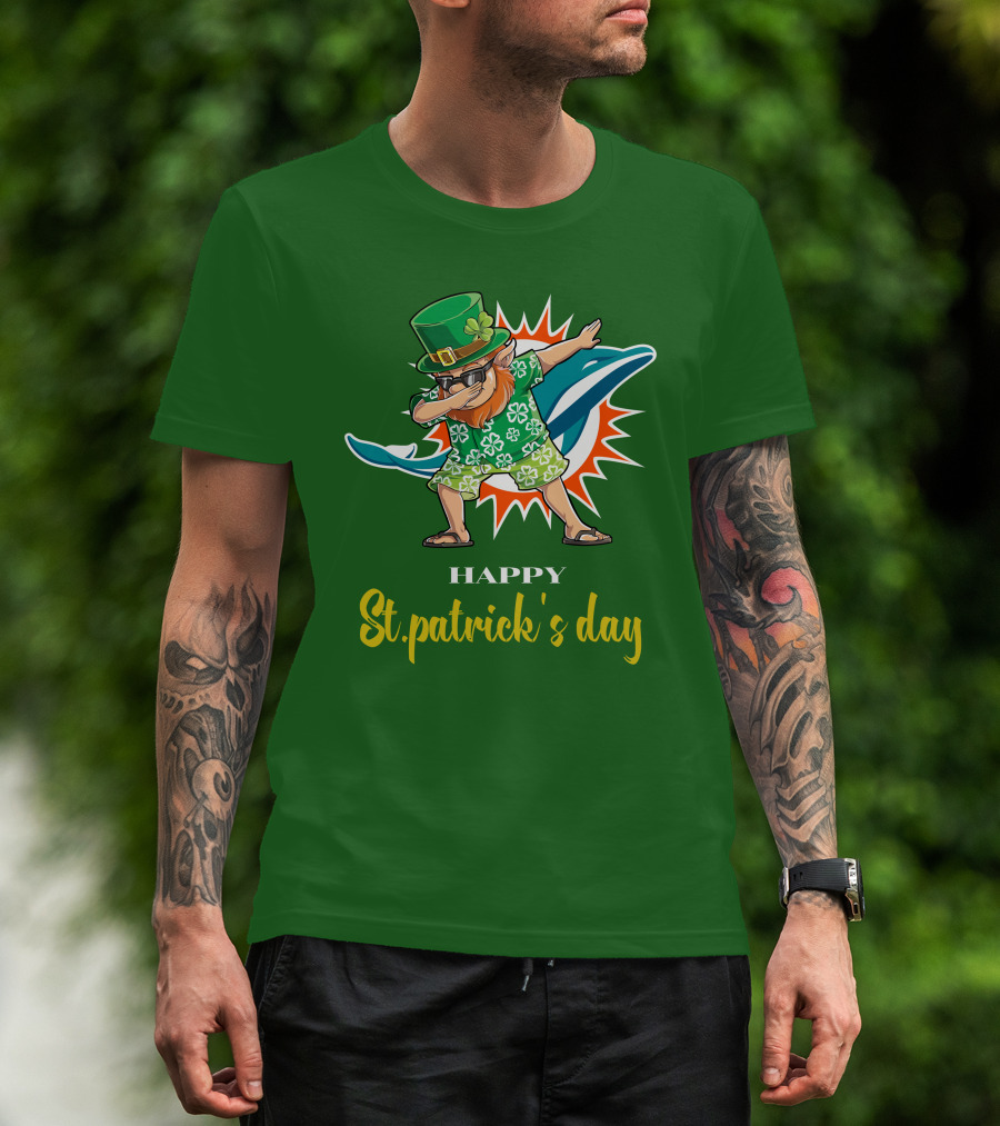 Happy St. Patrick's Day Miami Dolphins Dabbing Leprechaun T-Shirt