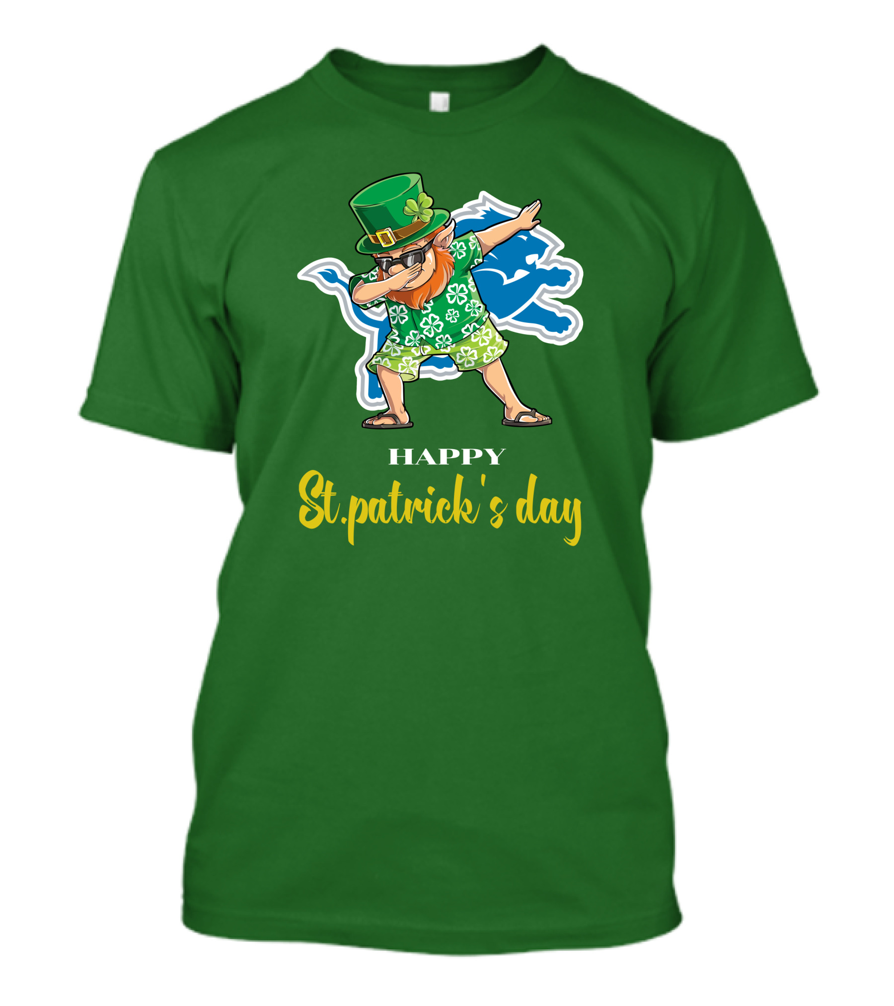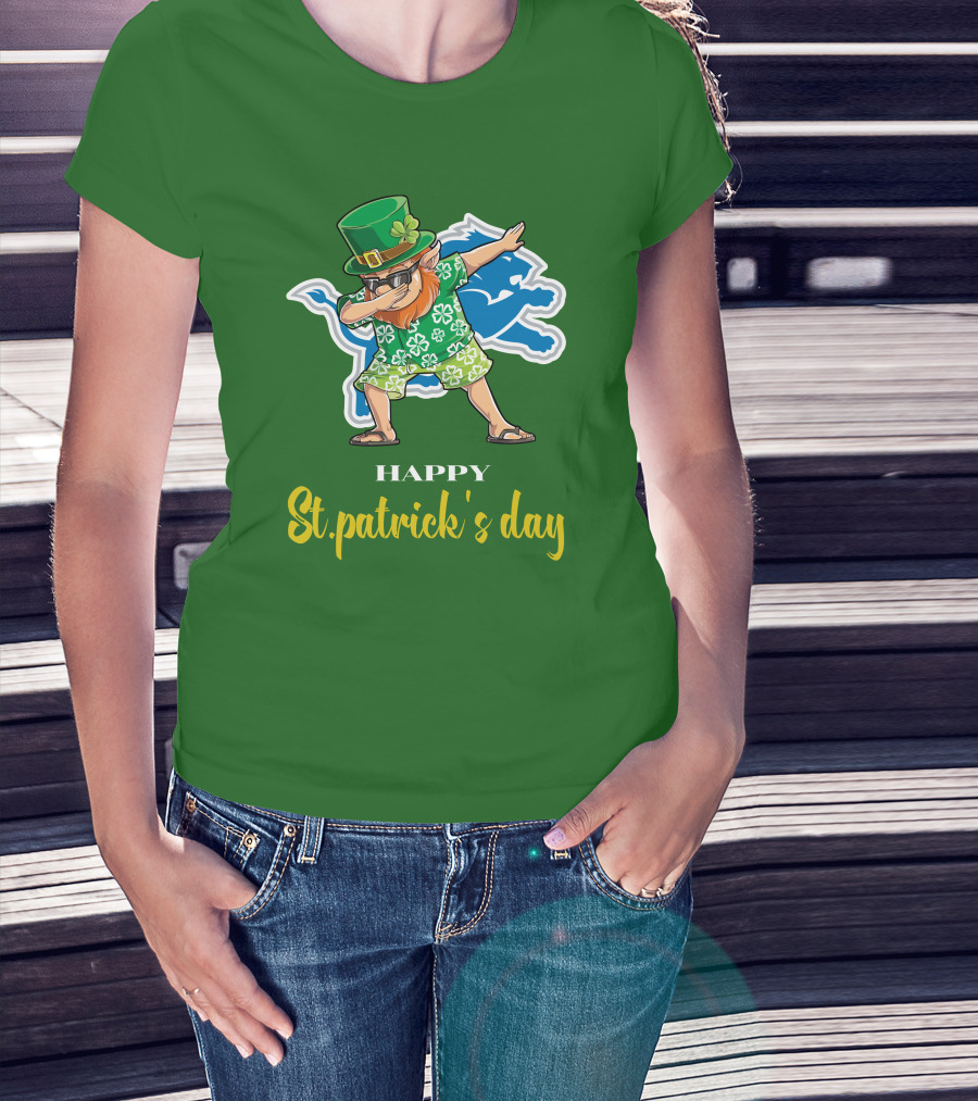 The Happy St. Patrick's Day Dabbing Leprechaun Detroit Lions T-shirt is designed for everyday wear and a consistent fit. Fabric is pre-shrunk ring-spun cotton with durable stitching. See the size chart below for exact measurements.