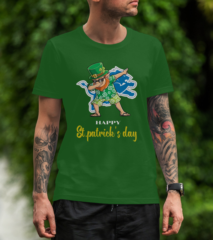 Happy St. Patrick's Day Dabbing Leprechaun Detroit Lions T-Shirt