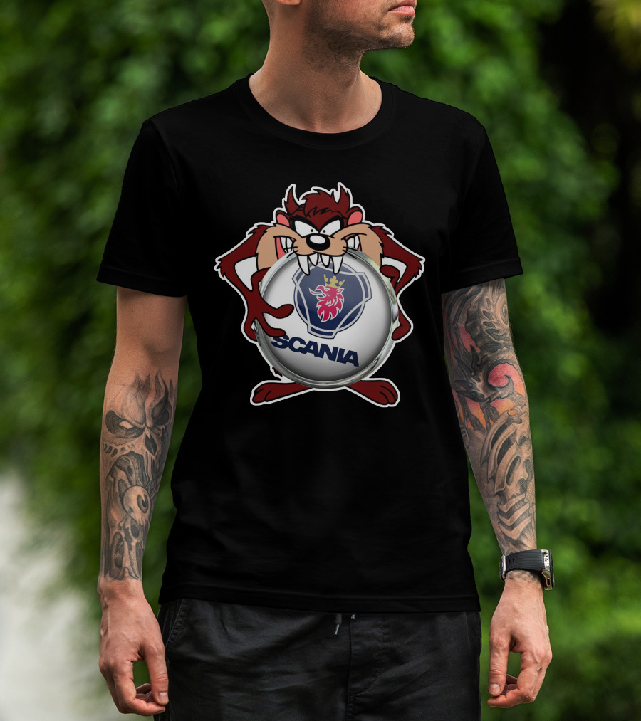 TAZ SCANIA Logo With Cartoon Character Holding Emblem T-Shirt