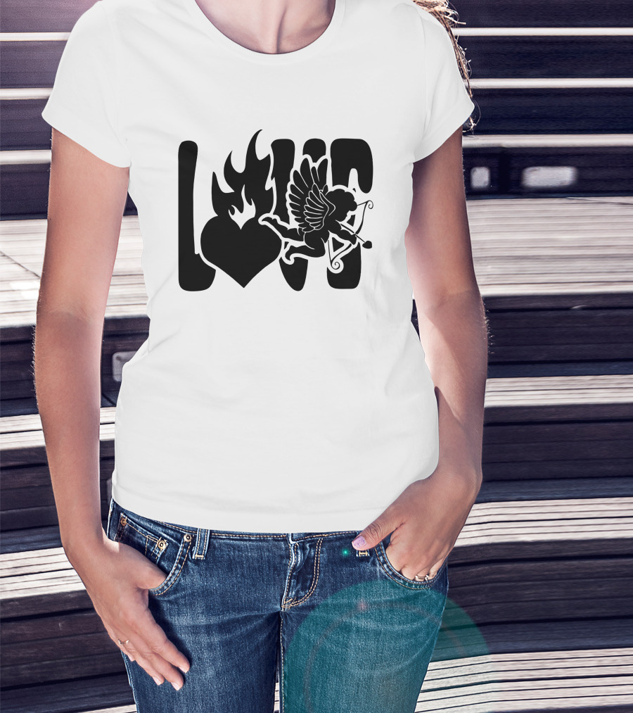 Benny Soliven Love Black Cupid Heart Flame T-Shirt