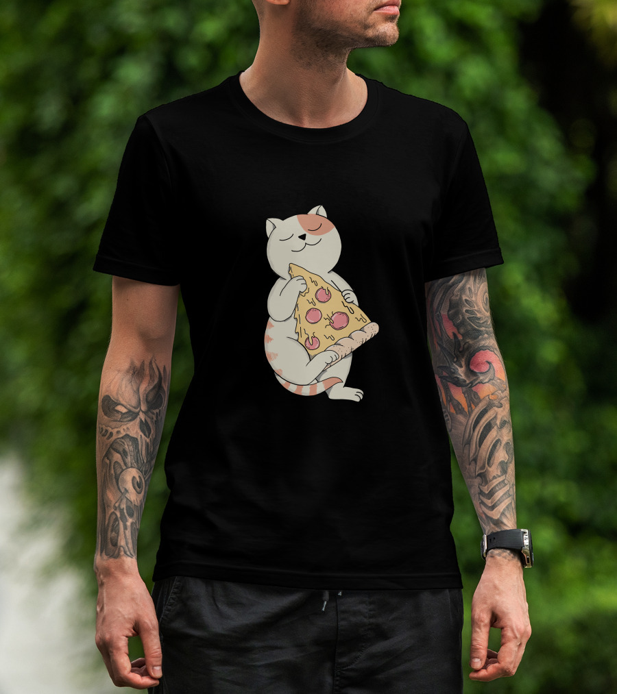 Cat Hugging Pepperoni Pizza Slice T-Shirt