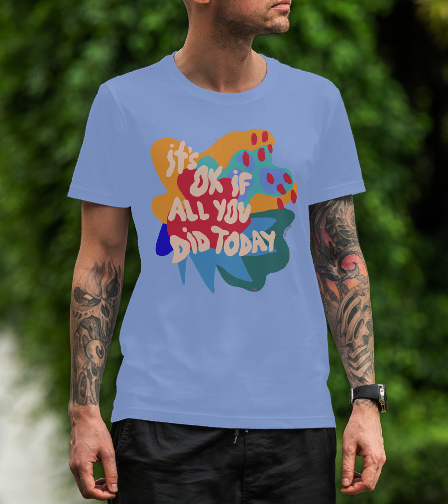 The it's ok if all you did today T-shirt is designed for everyday wear and a consistent fit. Fabric is pre-shrunk ring-spun cotton with durable stitching. See the size chart below for exact measurements.