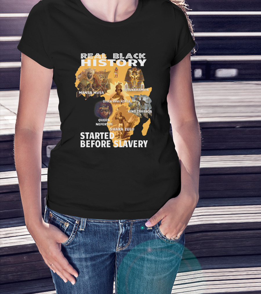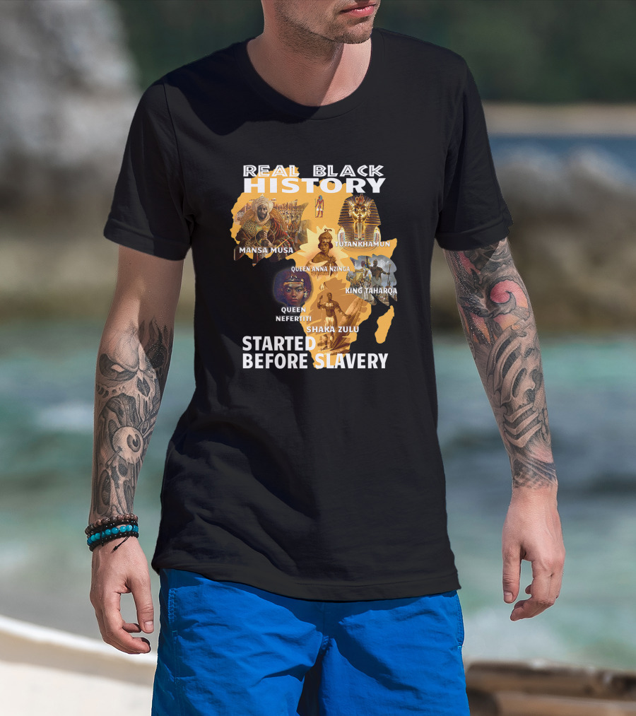 Real Black History Mansa Musa Tutankhamun Queen Anna Nzinga King Taharqa Queen Nefertiti Shaka Zulu Started Before Slavery T-Shirt