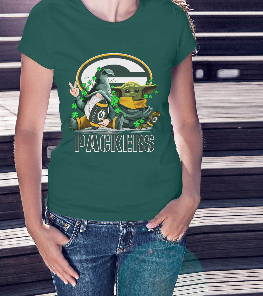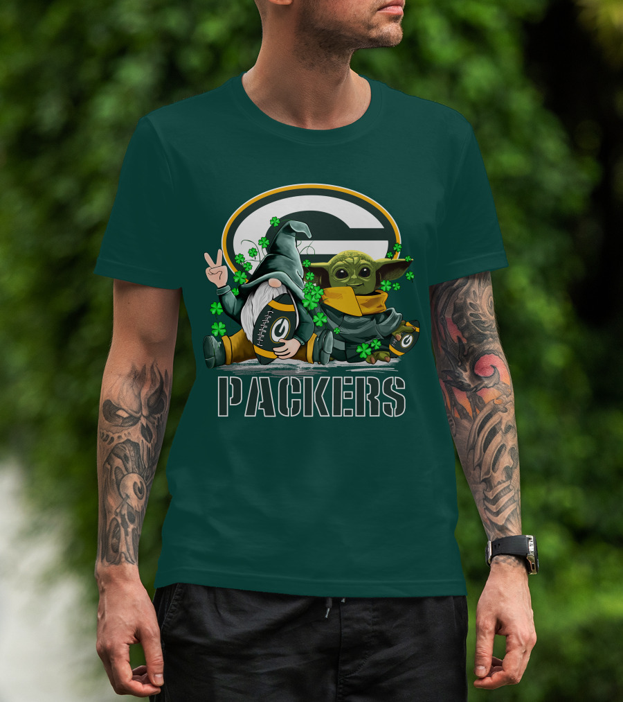 Leprechauns Gnomes Baby Yoda Packers Logo Shamrocks Hug Green Bay T-Shirt