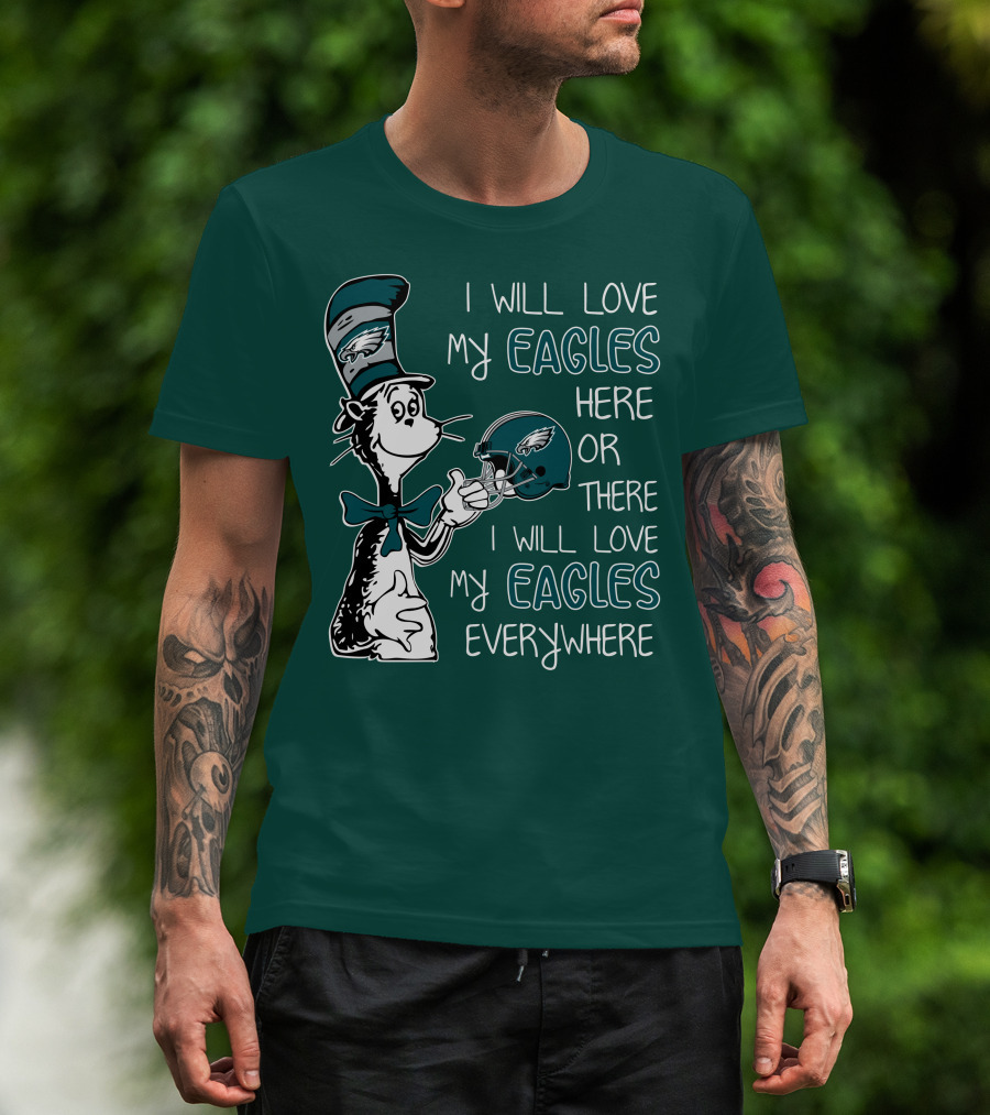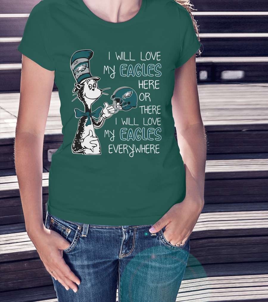 I Will Love My Philadelphia Eagles Here Or There I Will Love My Eagles Everywhere Dr Seuss T-Shirt