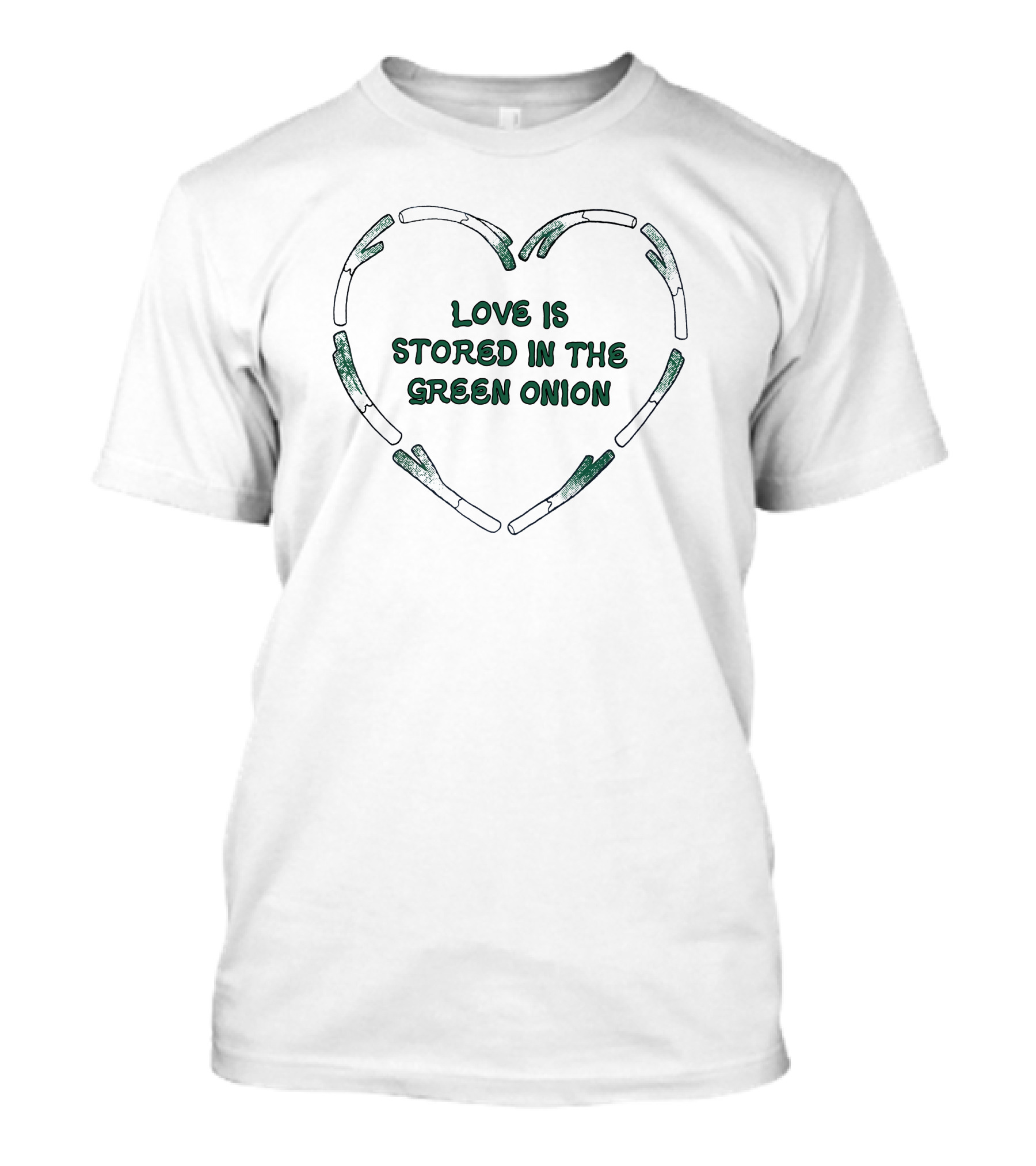 The Love Is Stored In The Green Onion Heart T-shirt is designed for everyday wear and a consistent fit. Fabric is pre-shrunk ring-spun cotton with durable stitching. See the size chart below for exact measurements.