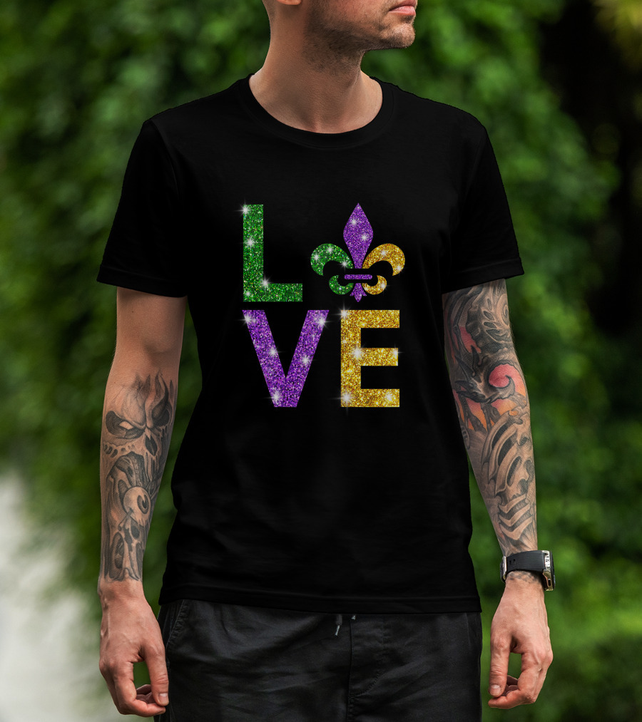 I Love Mardi Gras Fleur-de-Lis Glitter Celebration T-Shirt