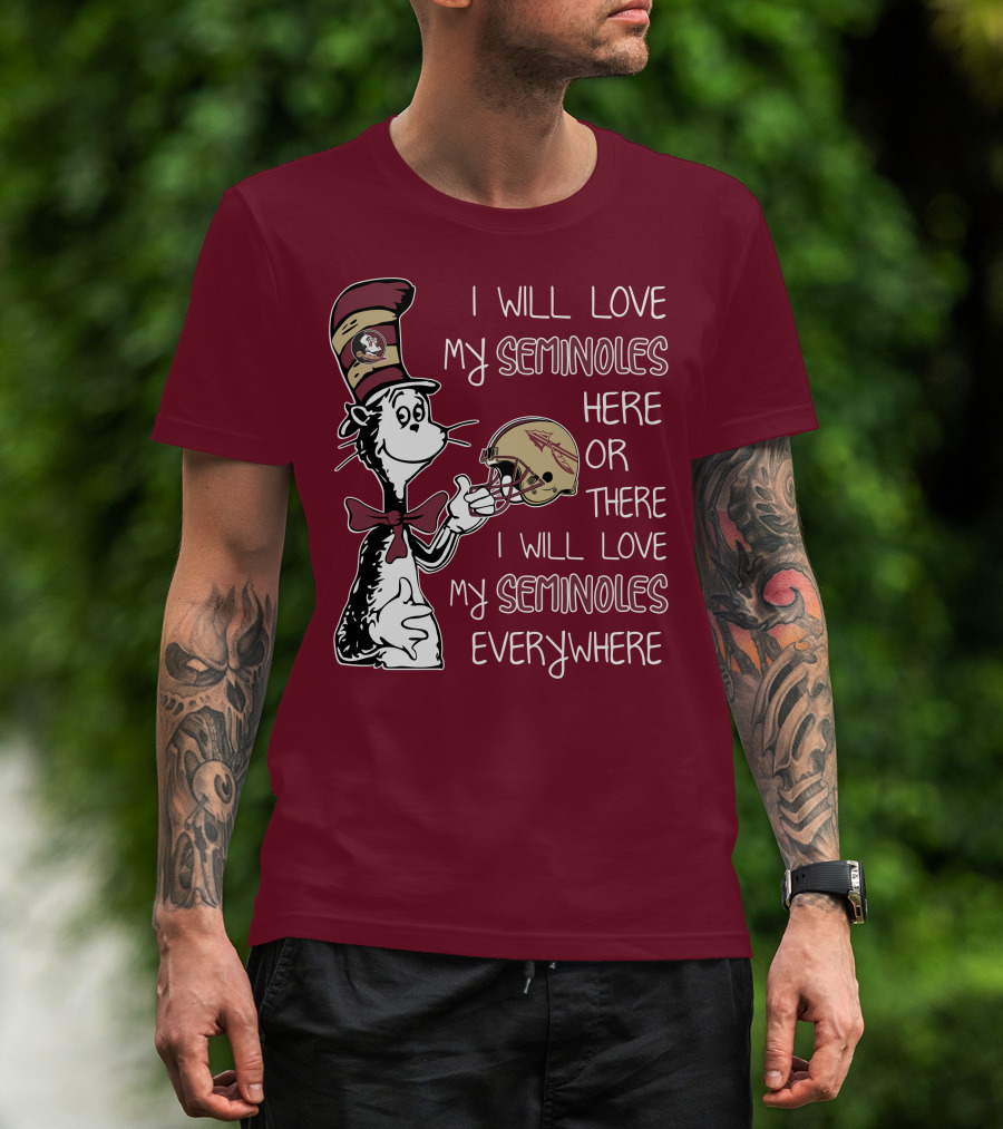 I Will Love My Seminoles Here Or There I Will Love My Seminoles Everywhere Dr Seuss Florida State T-Shirt