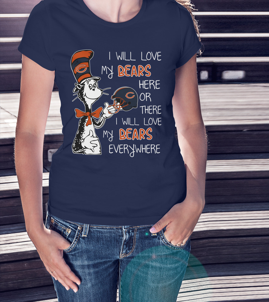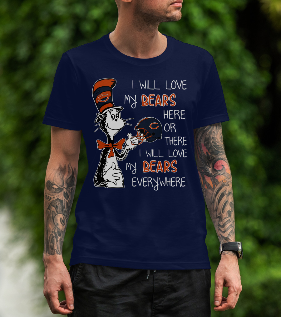 The I Will Love My Bears Here or There I Will Love My Bears Everywhere Dr Seuss Chicago T-shirt is designed for everyday wear and a consistent fit. Fabric is pre-shrunk ring-spun cotton with durable stitching. See the size chart below for exact measurements.