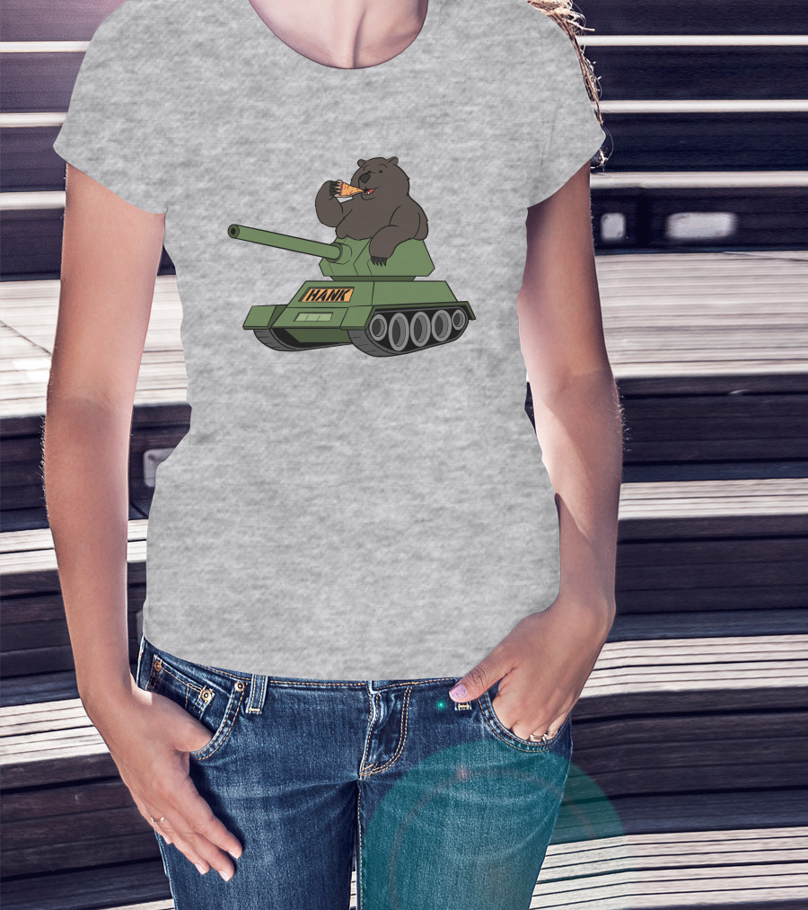 Bear Eating Pizza On A Tank With Hank Text T-Shirt