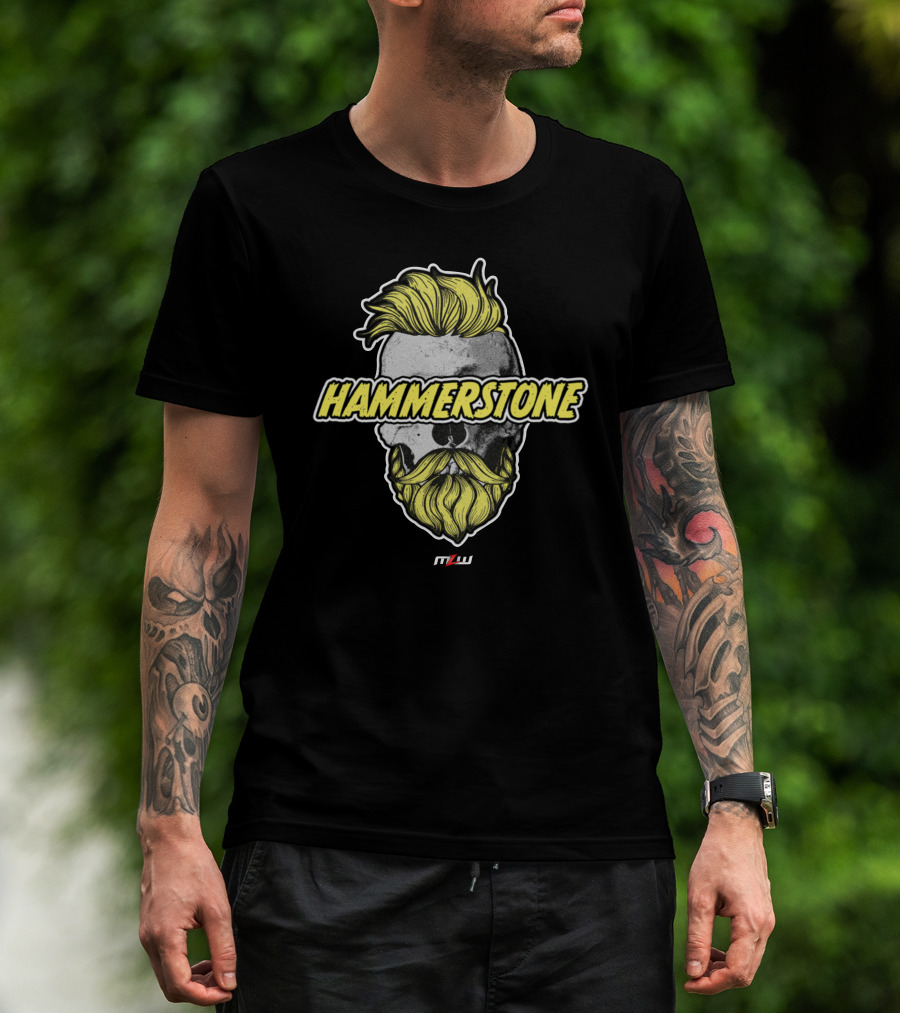 The Hammerstone MLW Skull Pro Wrestling Tees Alex Hammerstone T-shirt is designed for everyday wear and a consistent fit. Fabric is pre-shrunk ring-spun cotton with durable stitching. See the size chart below for exact measurements.