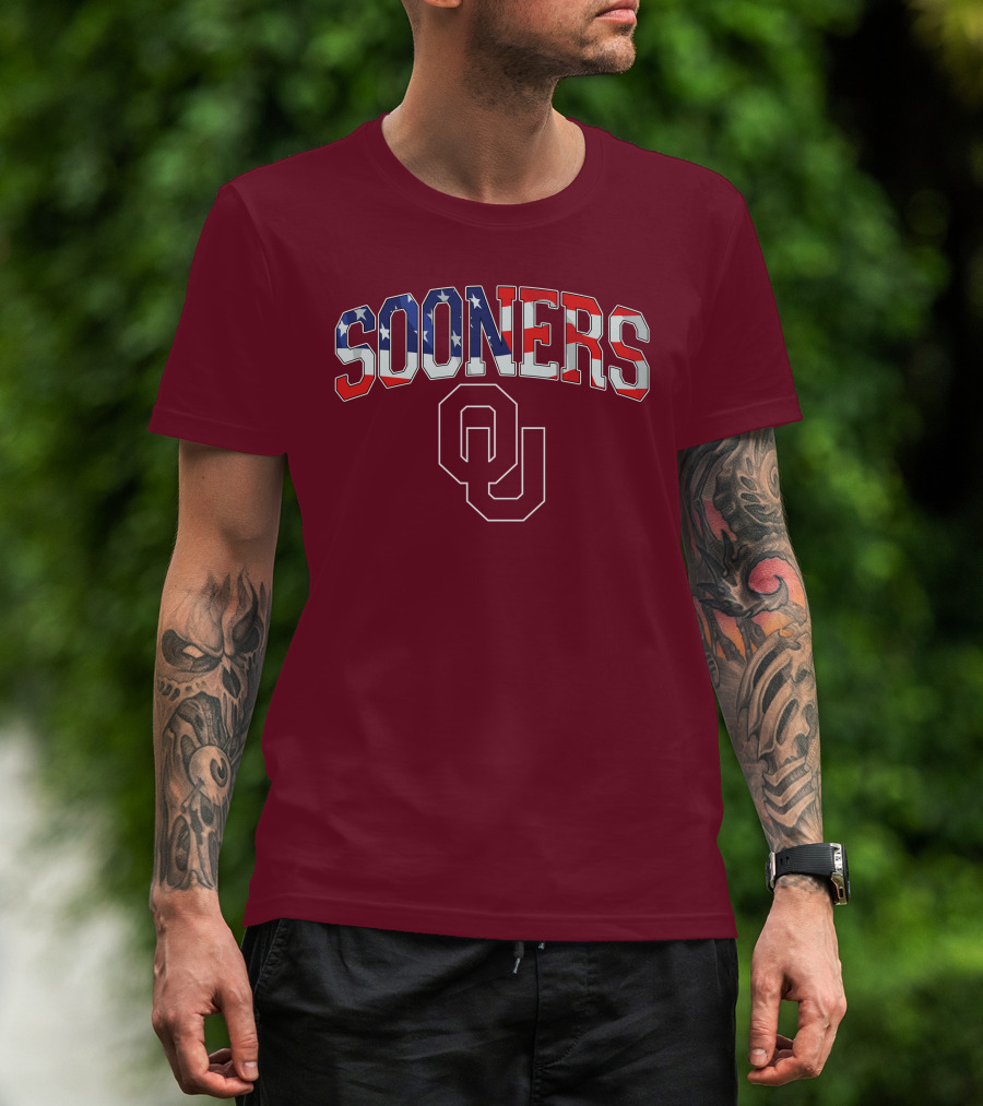 The Sooners American Flag OU T-shirt is designed for everyday wear and a consistent fit. Fabric is pre-shrunk ring-spun cotton with durable stitching. See the size chart below for exact measurements.