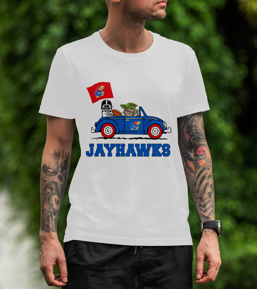 Kansas Jayhawks Darth Vader Baby Yoda Driving With Flag Star Wars Football T-Shirt