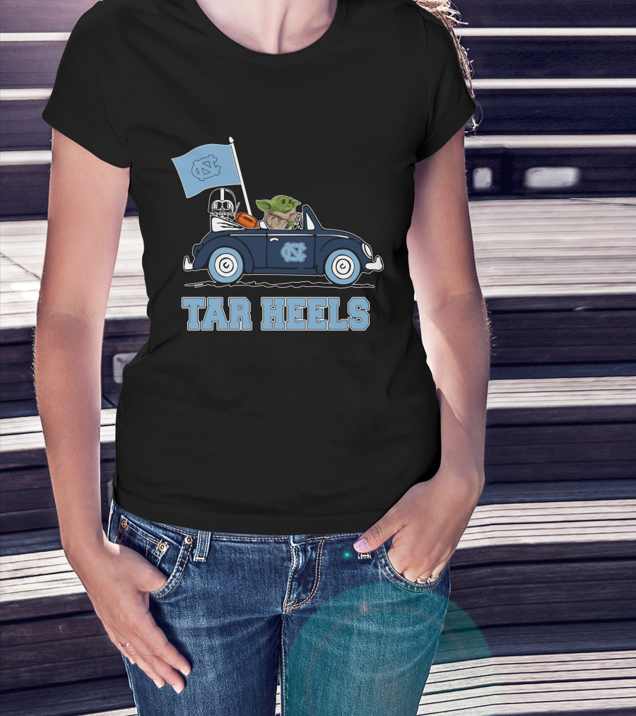 North Carolina Tar Heels Darth Vader Baby Yoda Driving Car Star Wars T-Shirt