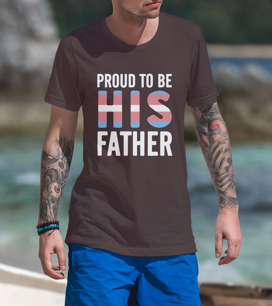 PROUD TO BE HIS FATHER Transgender Pride Colors T-Shirt
