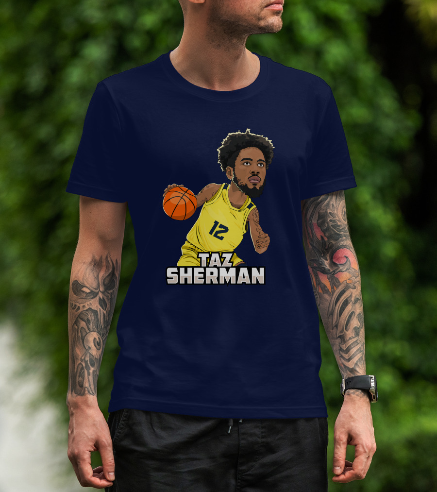 The Taz Sherman Basketball Illustration 12 Lakers Jersey Players Trunk Collaboration T-shirt is designed for everyday wear and a consistent fit. Fabric is pre-shrunk ring-spun cotton with durable stitching. See the size chart below for exact measurements.
