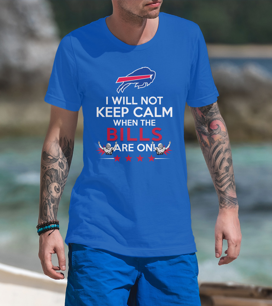 The Buffalo Bills Fans Will Not Keep Calm When The Bills Are On Football Game Time Excitement T-shirt is designed for everyday wear and a consistent fit. Fabric is pre-shrunk ring-spun cotton with durable stitching. See the size chart below for exact measurements.