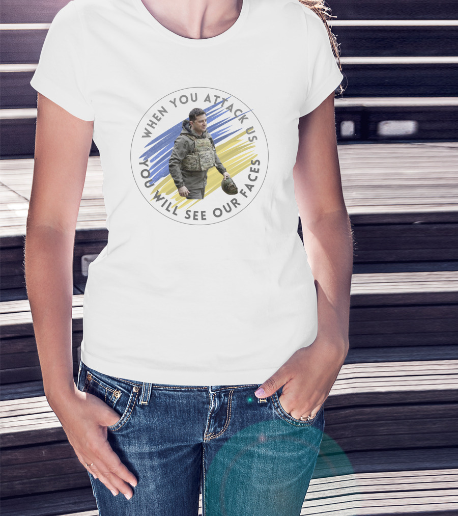 When You Attack Us You Will See Our Faces Military Figure With Blue And Yellow Background T-Shirt