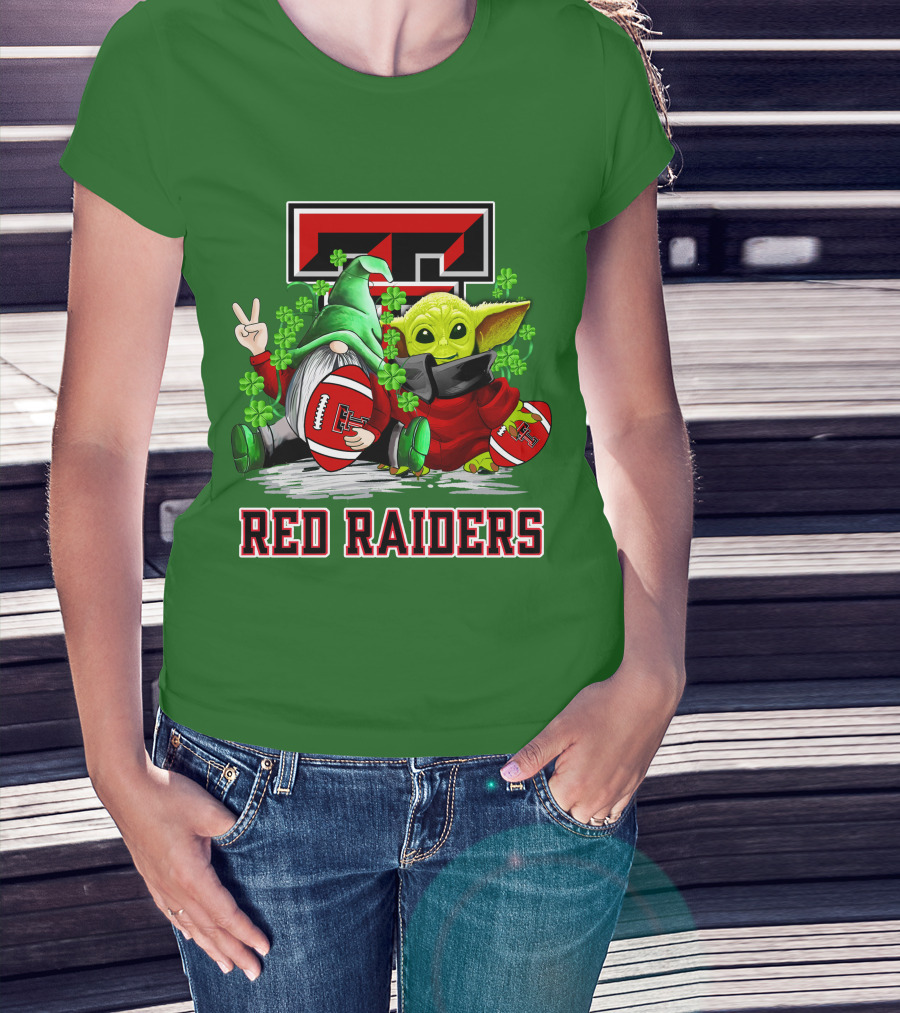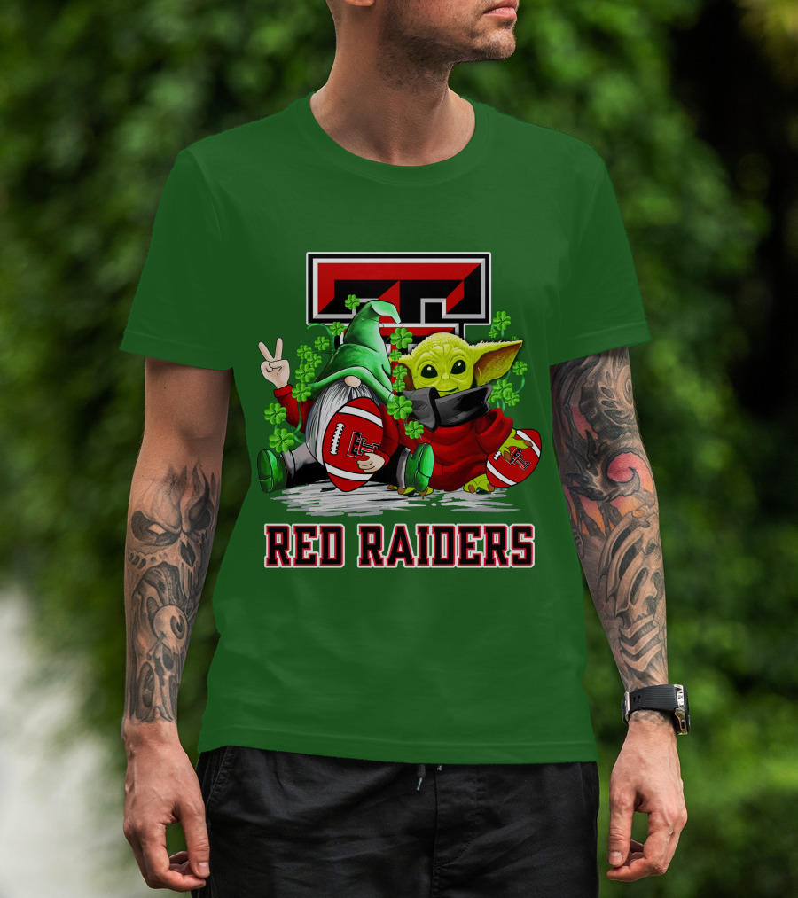 Texas Tech Red Raiders St. Patrick’s Day Football Gnome And Baby Alien With Shamrocks T-Shirt