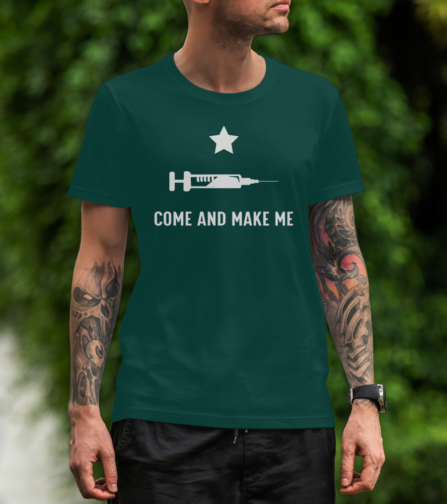 The Come And Make Me Star Above Syringe T-shirt is designed for everyday wear and a consistent fit. Fabric is pre-shrunk ring-spun cotton with durable stitching. See the size chart below for exact measurements.