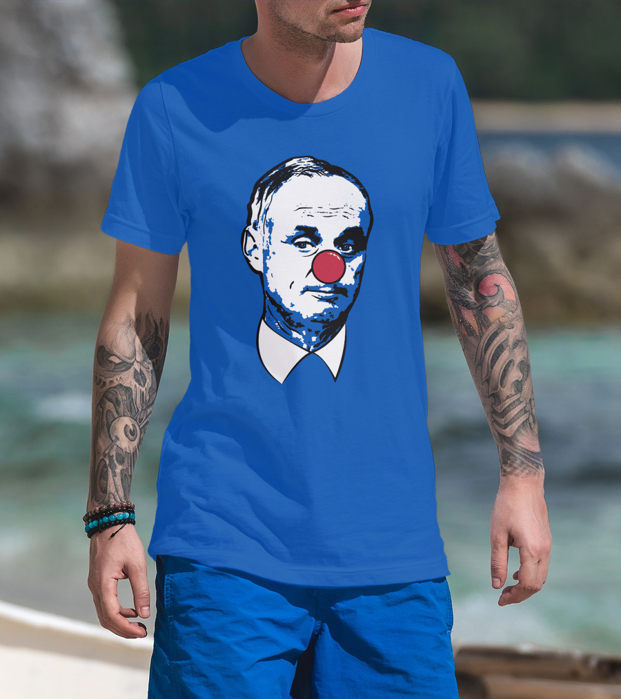 The Rob Manfred Clown Nose T-shirt is designed for everyday wear and a consistent fit. Fabric is pre-shrunk ring-spun cotton with durable stitching. See the size chart below for exact measurements.