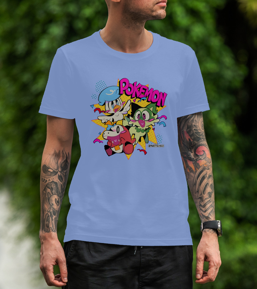 The Natflorezz Pokemon Quaxly Sprigatito Fuecoco Characters T-shirt is designed for everyday wear and a consistent fit. Fabric is pre-shrunk ring-spun cotton with durable stitching. See the size chart below for exact measurements.