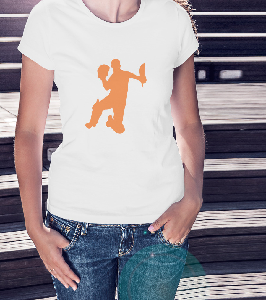 David Warner Orange Silhouette Cricketer Batting Pose T-Shirt