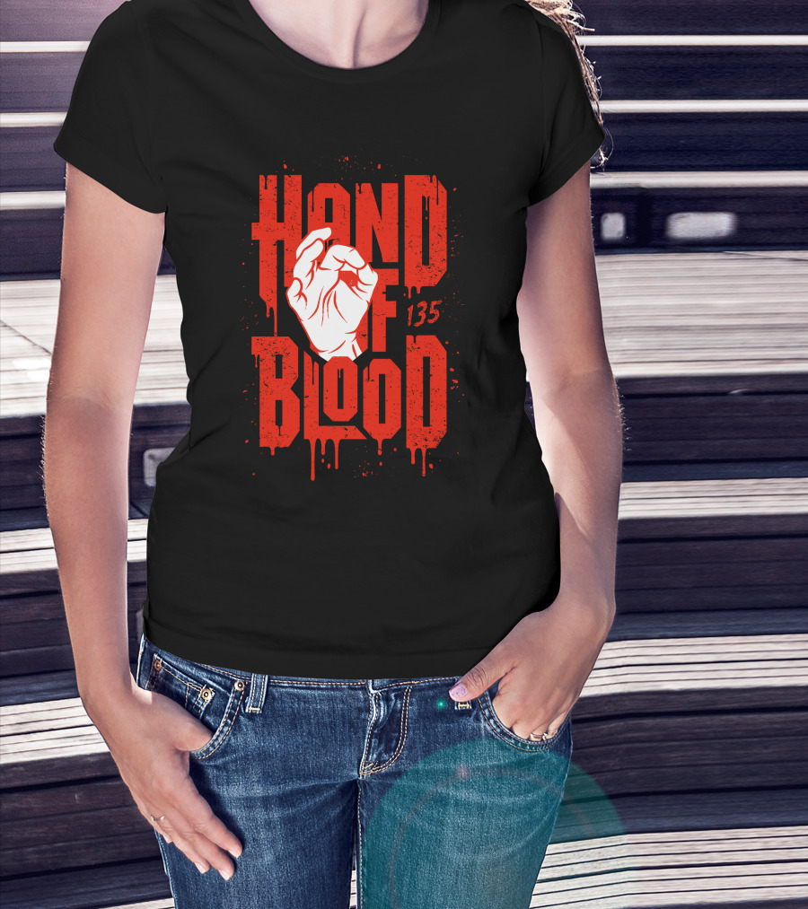 The HAND OF BLOOD 135 T-shirt is designed for everyday wear and a consistent fit. Fabric is pre-shrunk ring-spun cotton with durable stitching. See the size chart below for exact measurements.