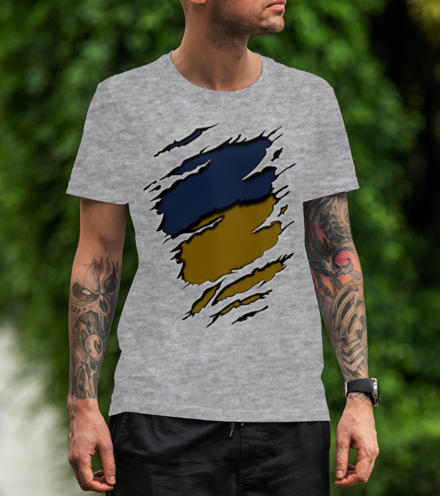 The Sain-Yan Blue and Gold Torn Claw Marks T-shirt is designed for everyday wear and a consistent fit. Fabric is pre-shrunk ring-spun cotton with durable stitching. See the size chart below for exact measurements.