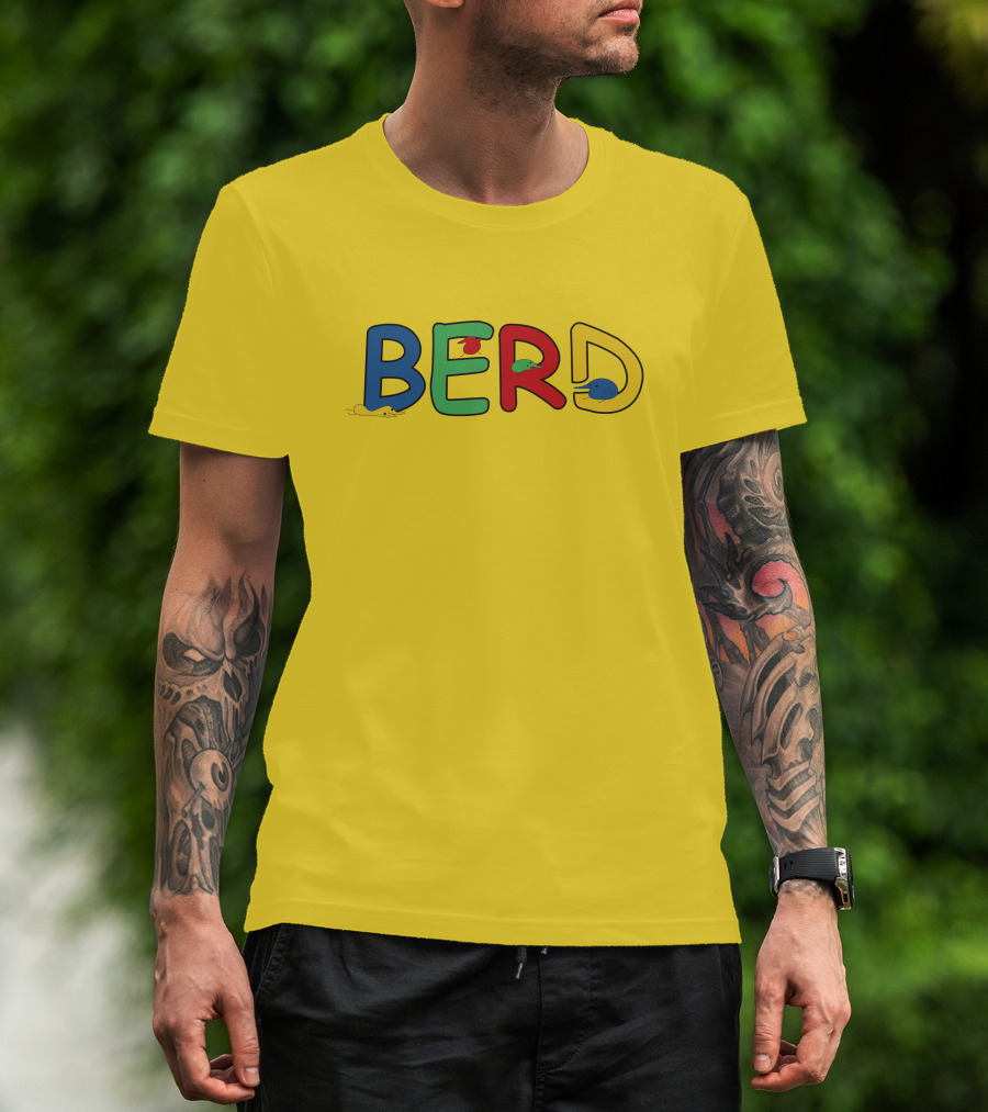 The BERD Colorful Text with Mice Accents T-shirt is designed for everyday wear and a consistent fit. Fabric is pre-shrunk ring-spun cotton with durable stitching. See the size chart below for exact measurements.