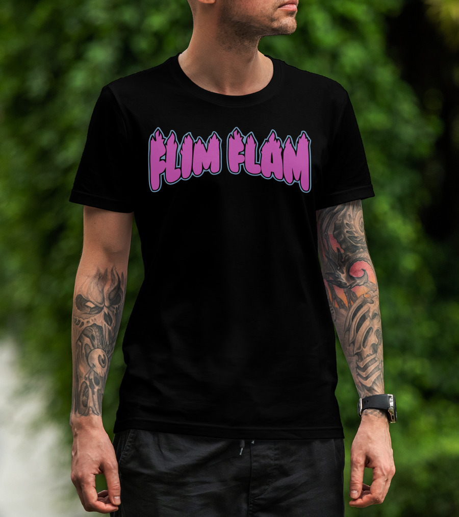 The Flim Flam Colorful Flame Font T-shirt is designed for everyday wear and a consistent fit. Fabric is pre-shrunk ring-spun cotton with durable stitching. See the size chart below for exact measurements.