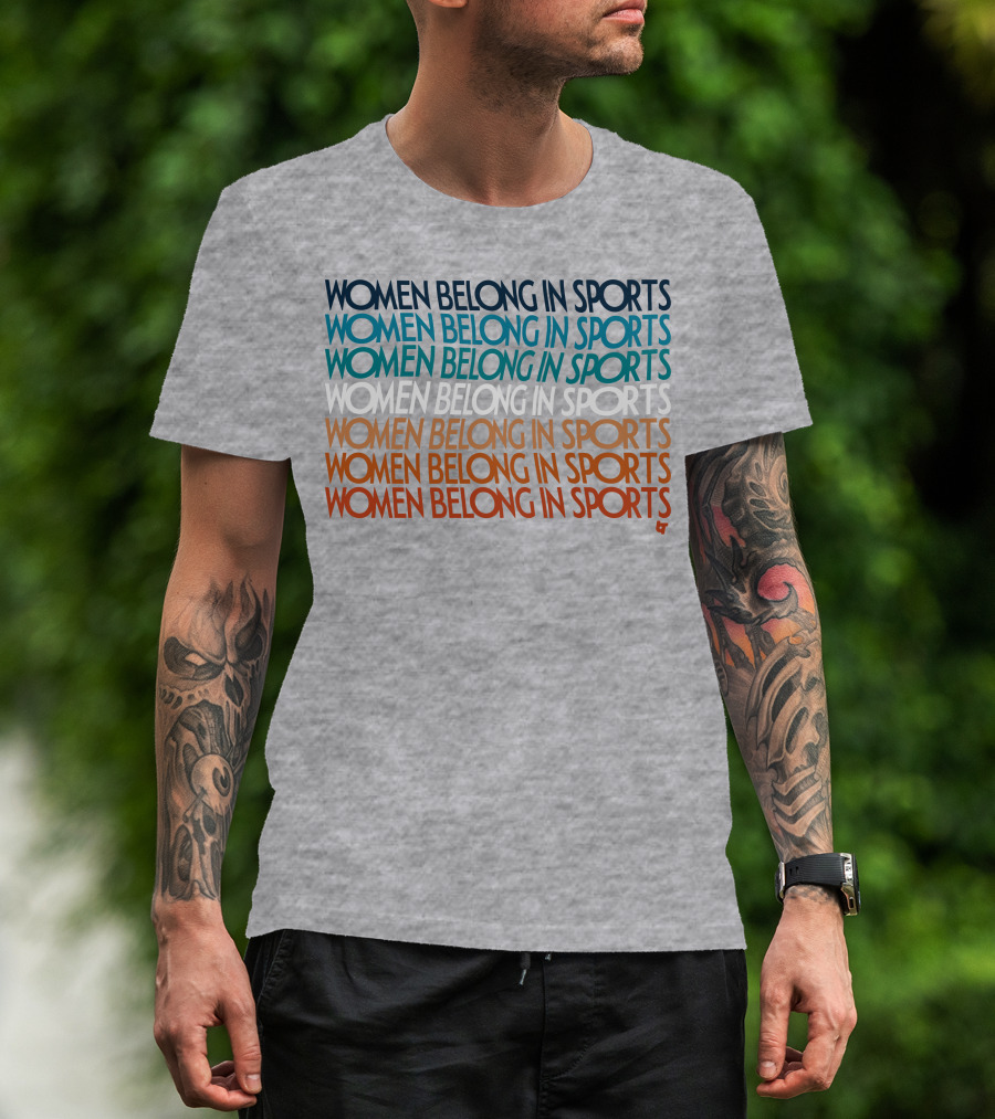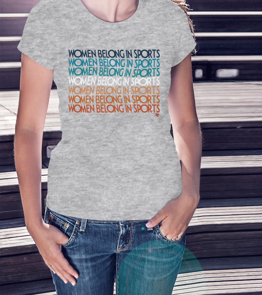 WOMEN BELONG IN SPORTS Multi-Colored Text T-Shirt