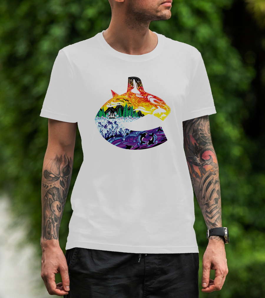 Vanbase Merch Vancouver Canucks Pride Orca Rainbow T-Shirt