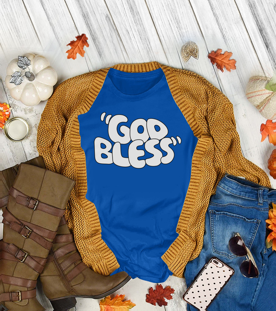 God Bless Text In Bubble Letters T-Shirt
