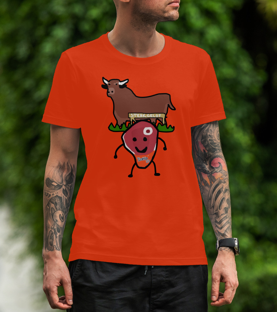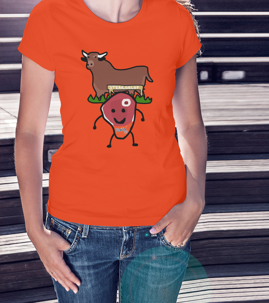 Steak Gelof Virginia 22 Cartoon Bull And Smiling Meat Character On Red T-Shirt