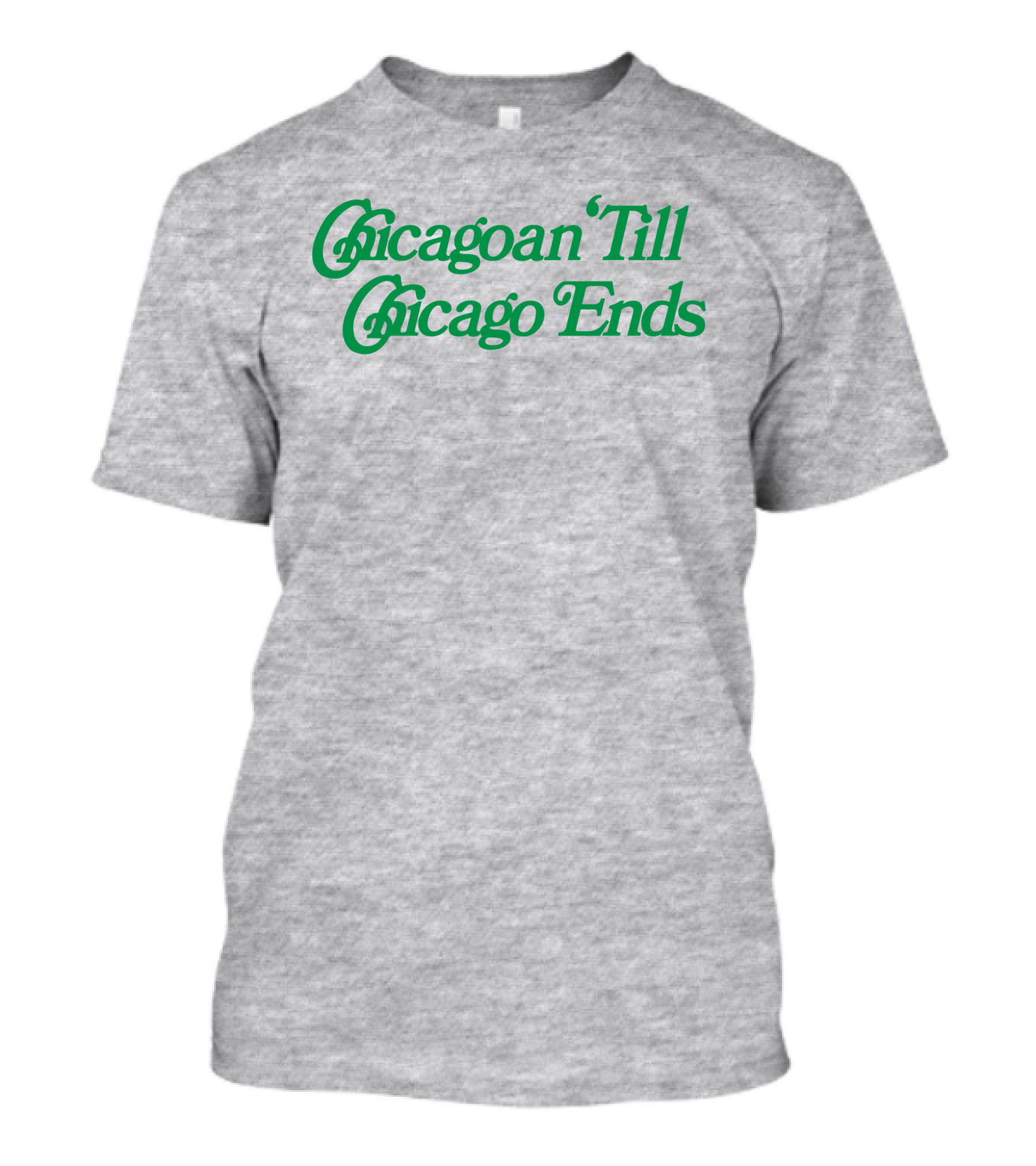 The Chicagoan Till Chicago Ends Green T-shirt is designed for everyday wear and a consistent fit. Fabric is pre-shrunk ring-spun cotton with durable stitching. See the size chart below for exact measurements.