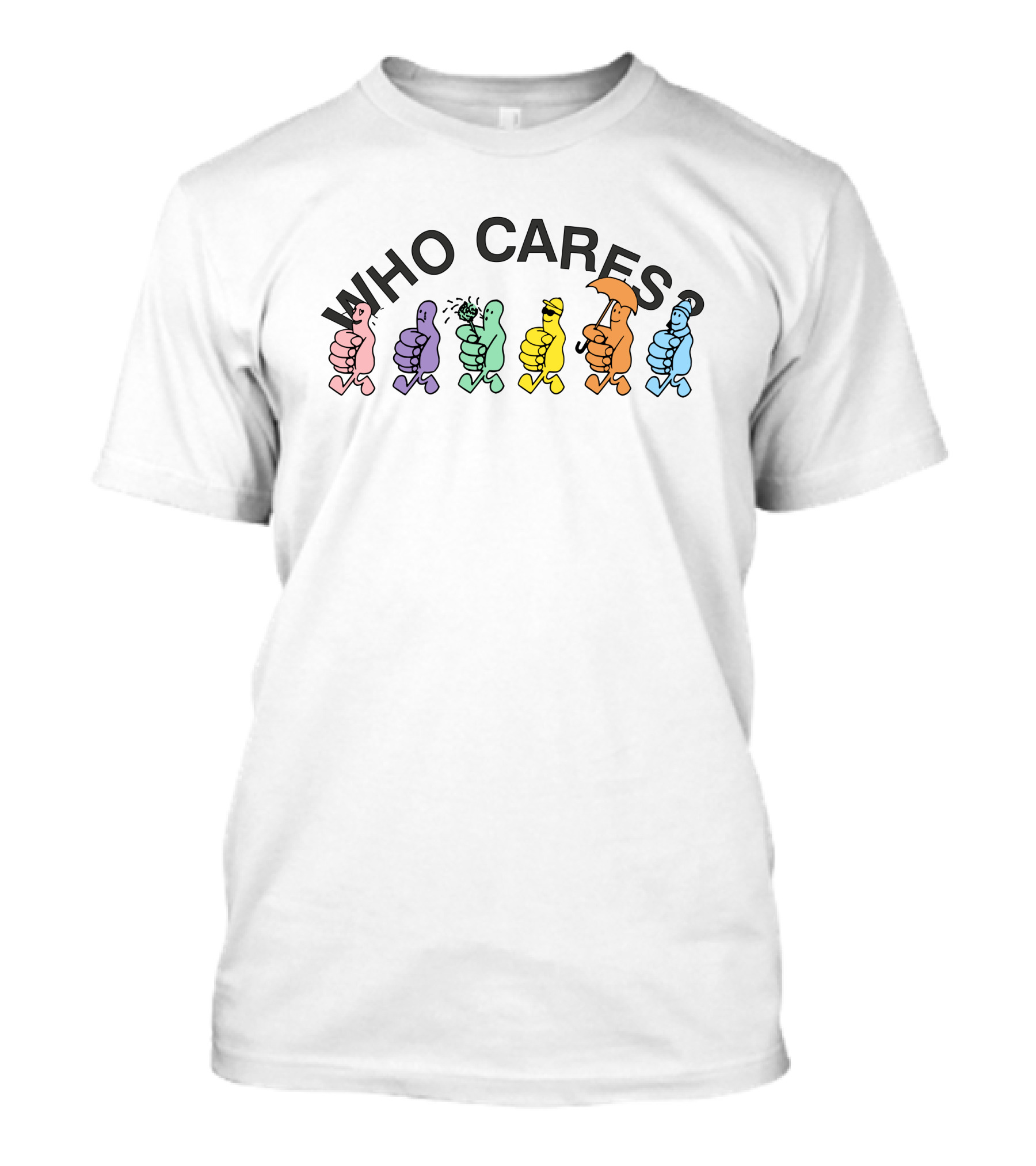 The WHO CARES Rex Orange County Multicolored Characters T-shirt is designed for everyday wear and a consistent fit. Fabric is pre-shrunk ring-spun cotton with durable stitching. See the size chart below for exact measurements.