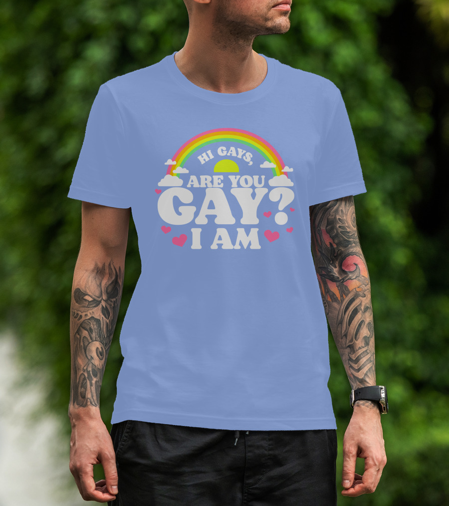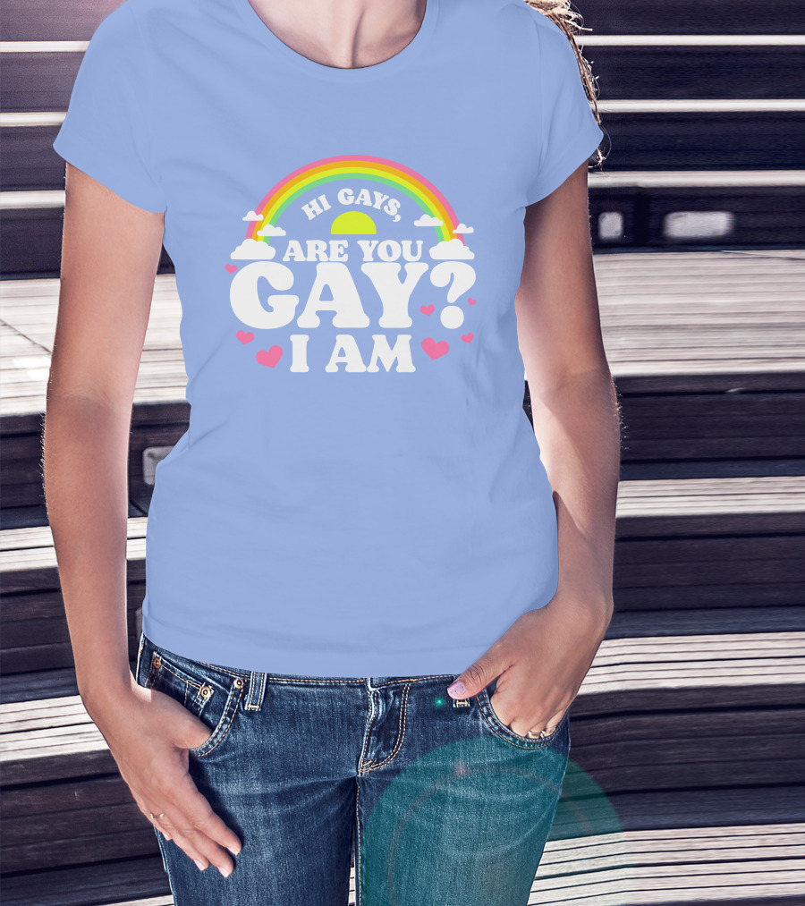 Hi Gays Are You Gay I Am Rainbow Hearts T-Shirt