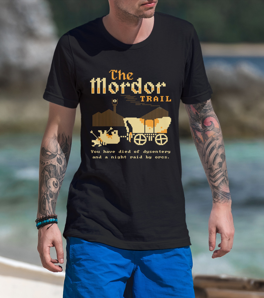 The The Mordor Trail You Have Died of Dysentery and a Night Raid by Orcs T-shirt is designed for everyday wear and a consistent fit. Fabric is pre-shrunk ring-spun cotton with durable stitching. See the size chart below for exact measurements.