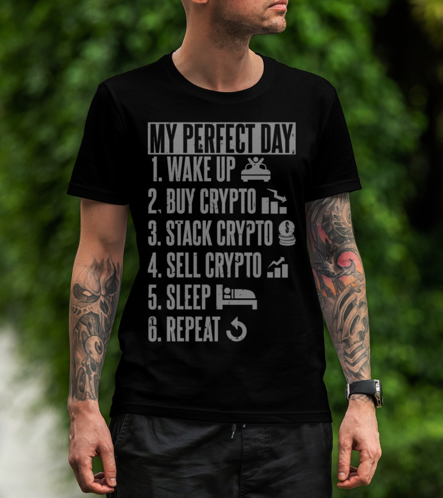My Perfect Day: Wake Up Buy Crypto Stack Crypto Sell Crypto Sleep Repeat T-Shirt