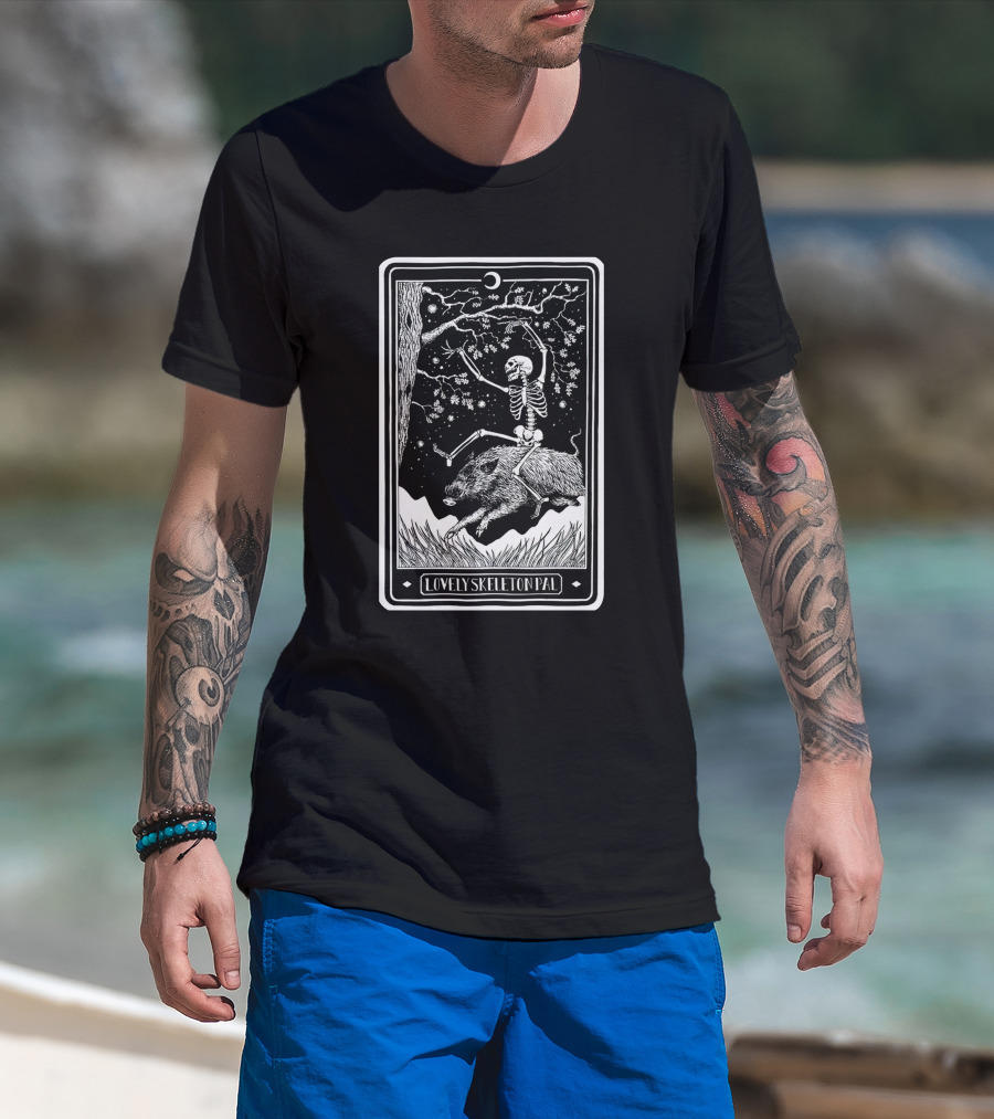 Lovely Skeleton Pal Johnny Chiodini Ever Press Store Merch Riding Wild Boar In Starry Night Scene T-Shirt