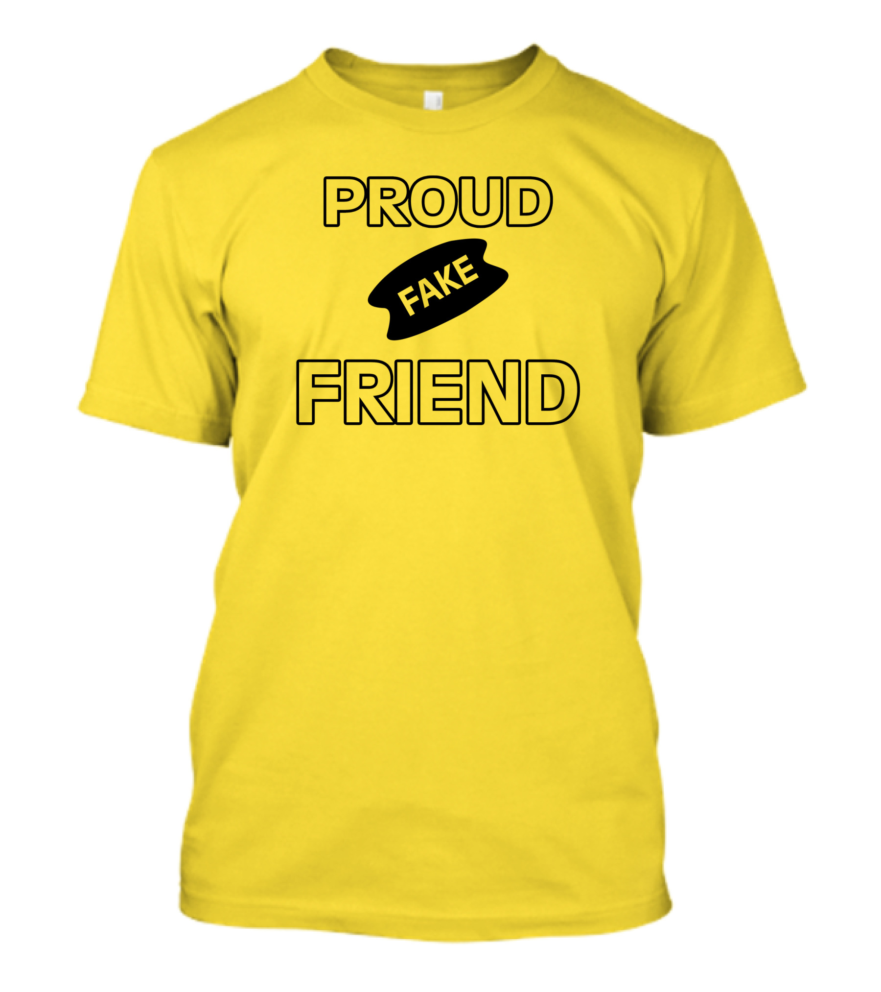 The Torahpepi Proud Fake Friend Textual Yellow T-shirt is designed for everyday wear and a consistent fit. Fabric is pre-shrunk ring-spun cotton with durable stitching. See the size chart below for exact measurements.
