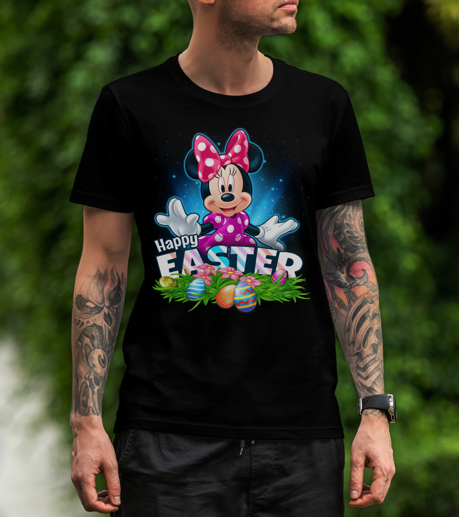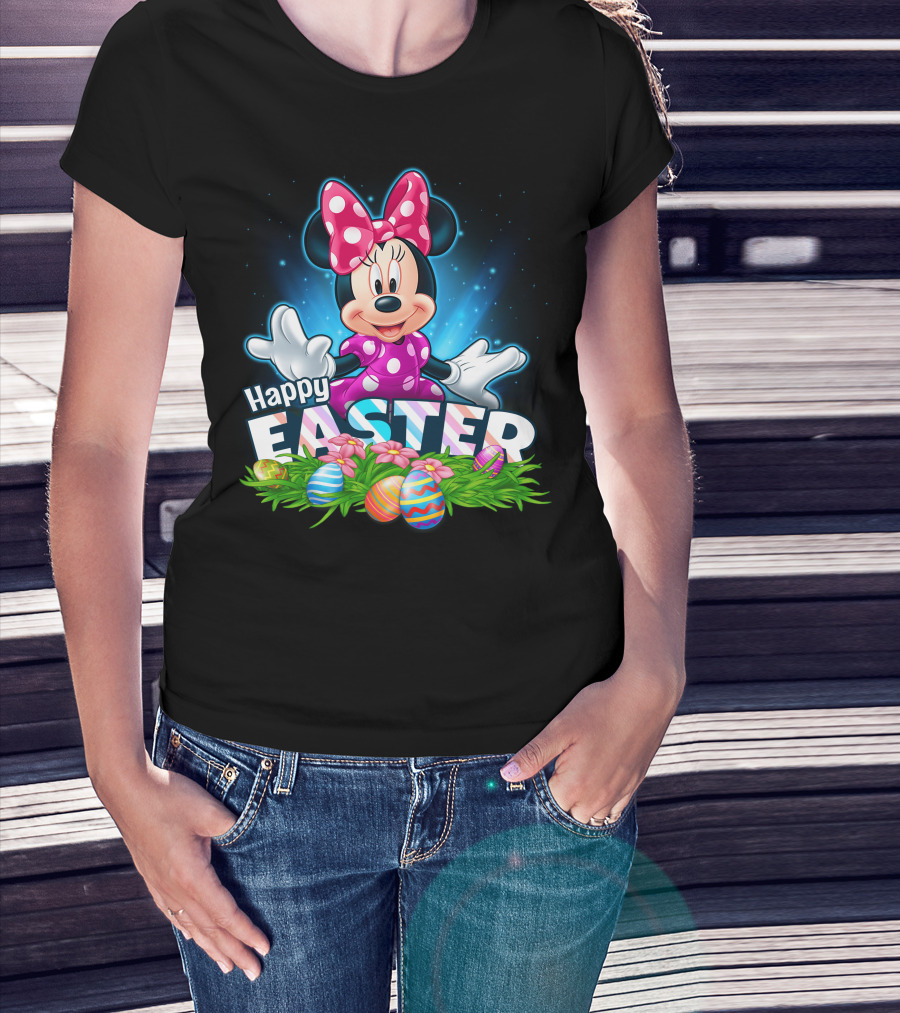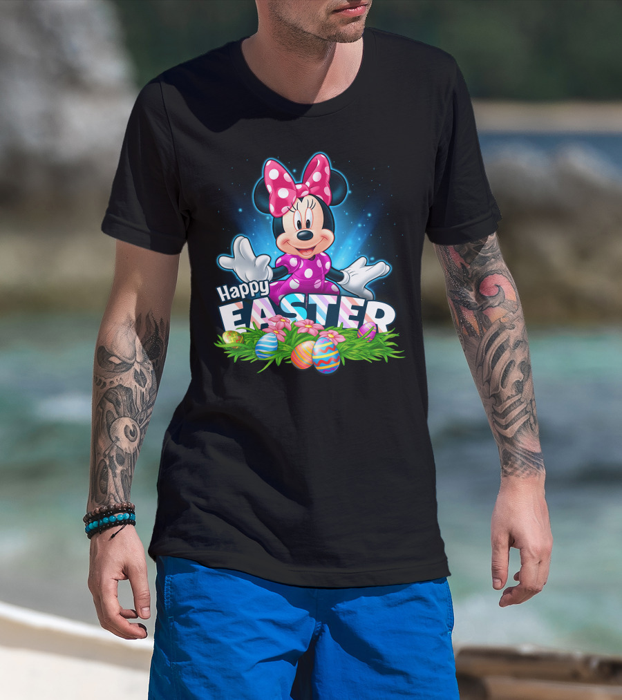 MINNIE Happy Easter Colorful Eggs And Pink Bow T-Shirt
