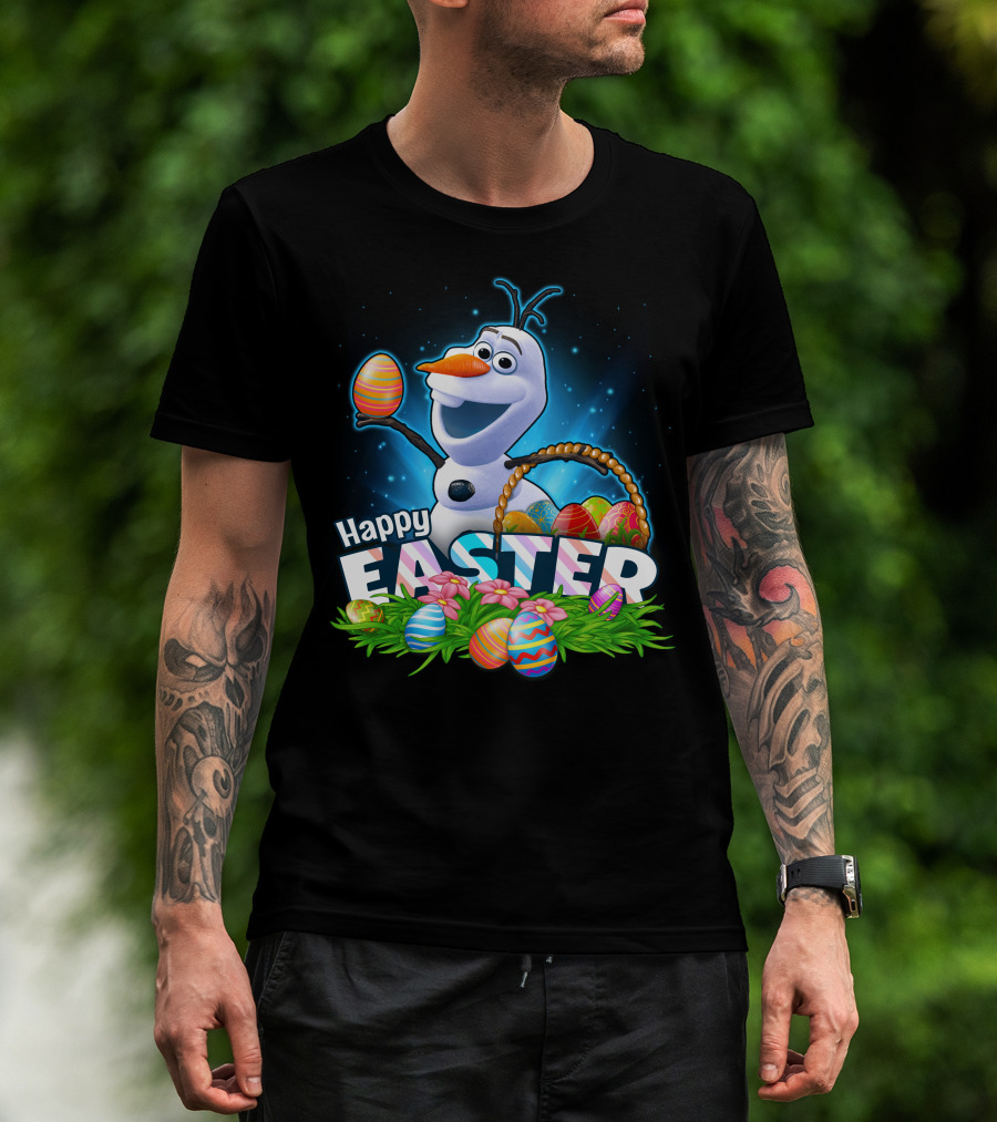 Happy Easter Olaf With Colorful Eggs And Basket T-Shirt