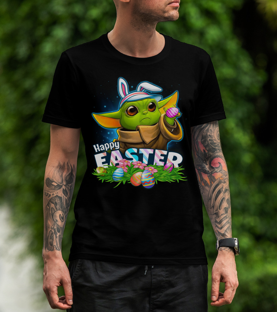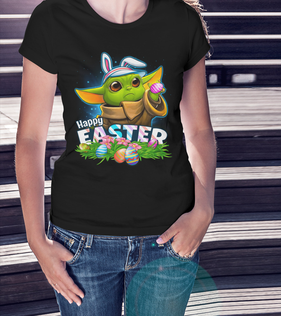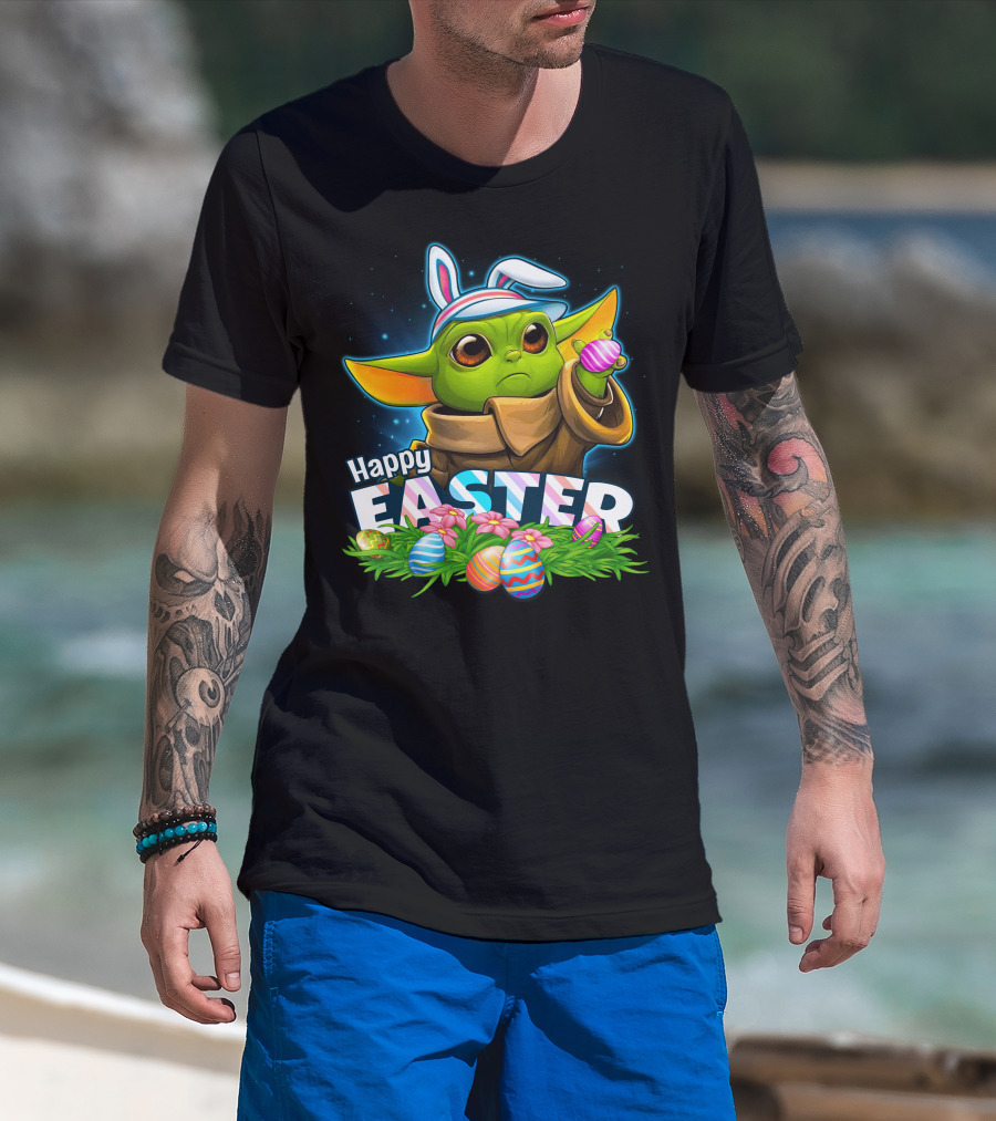 Happy Easter Yoda Baby With Bunny Ears And Colorful Eggs T-Shirt