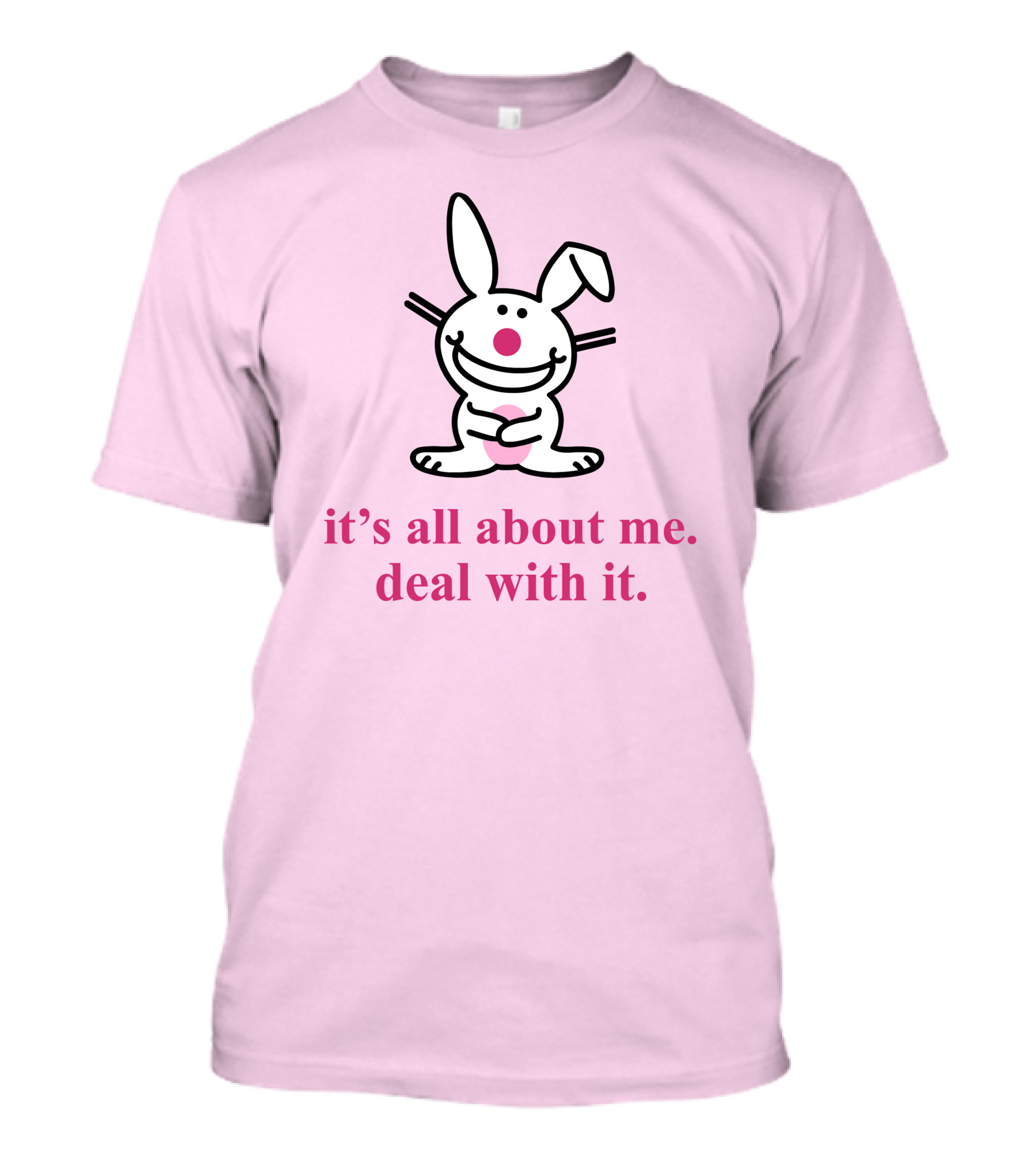 The Emtlina It's All About Me Deal With It Bunny Pink Background T-shirt is designed for everyday wear and a consistent fit. Fabric is pre-shrunk ring-spun cotton with durable stitching. See the size chart below for exact measurements.