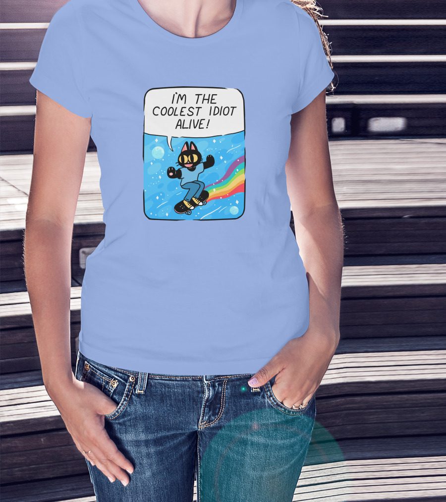 Mollyjohnt I'm The Coolest Idiot Alive Skateboarding Cat With Rainbow Trail T-Shirt